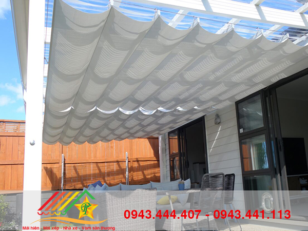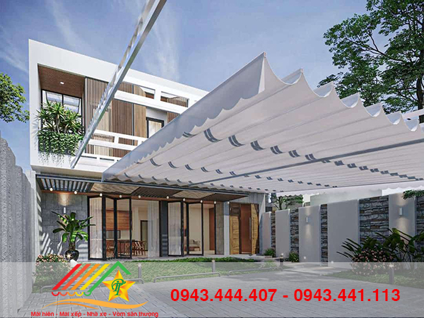 Khác với các loại mái che cứng nhắc hay mái bạt cuốn phẳng đơn điệu ,mái hiên lượn sóng sở hữu những ưu điểm vượt trội hơn:- Tạo sự mềm mại: Những nếp gấp bạt đều đặn như những con sóng tạo điểm nhấn nhẹ nhàng, sang trọng cho công trình.